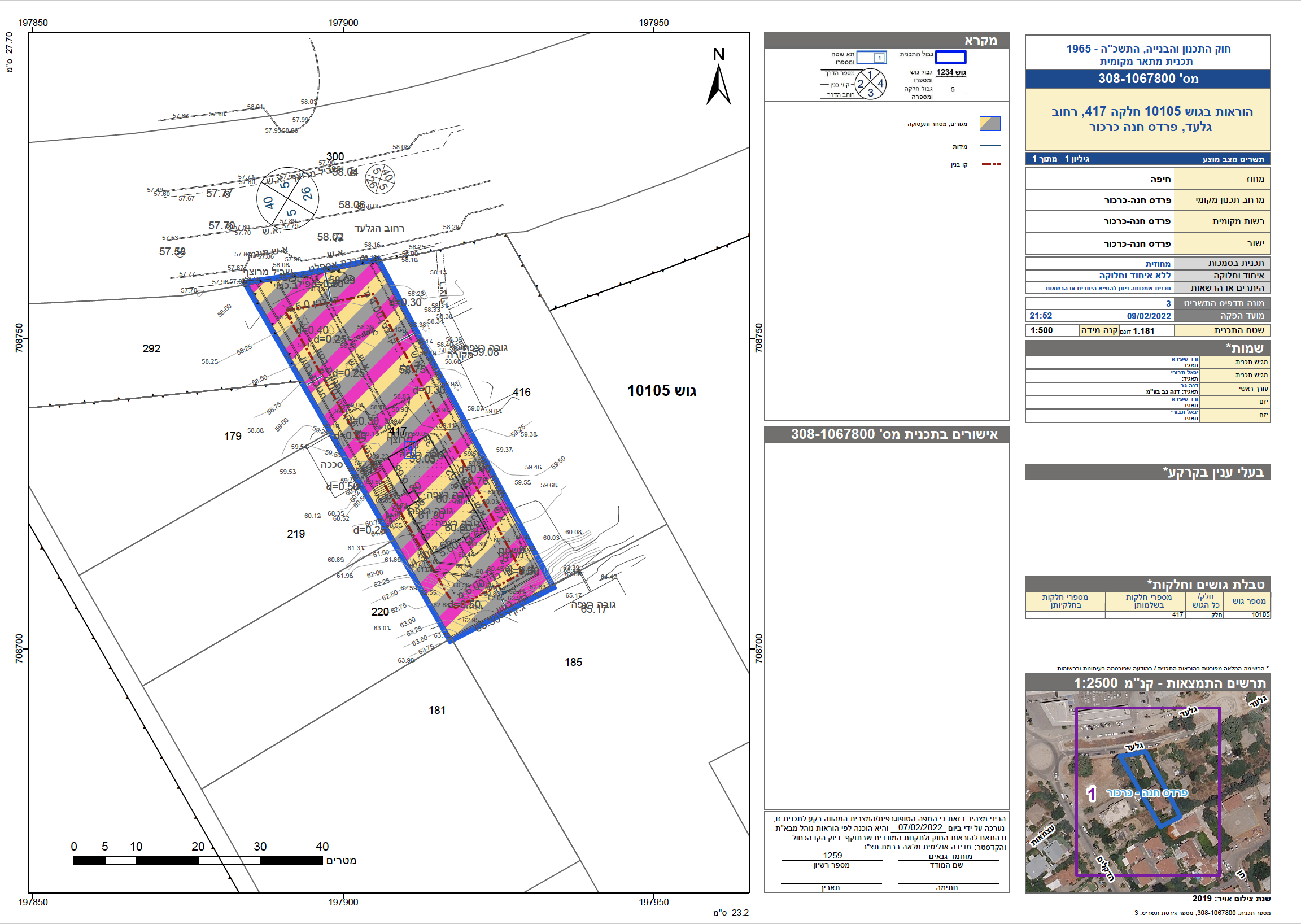 תכנית מתאר מקומית - שינוי יעוד הקרקע ליעוד מעורב של מסחר משרדים ומגורים ברחוב גלעד בפרדס חנה.