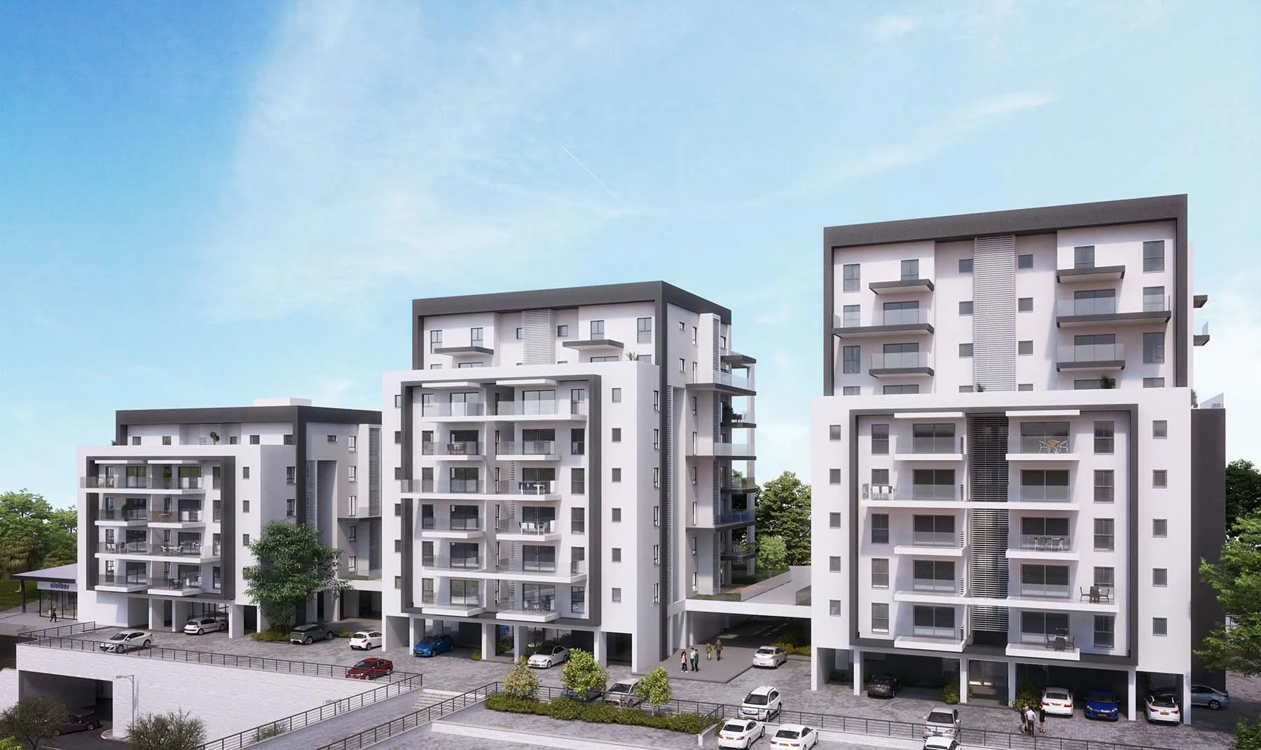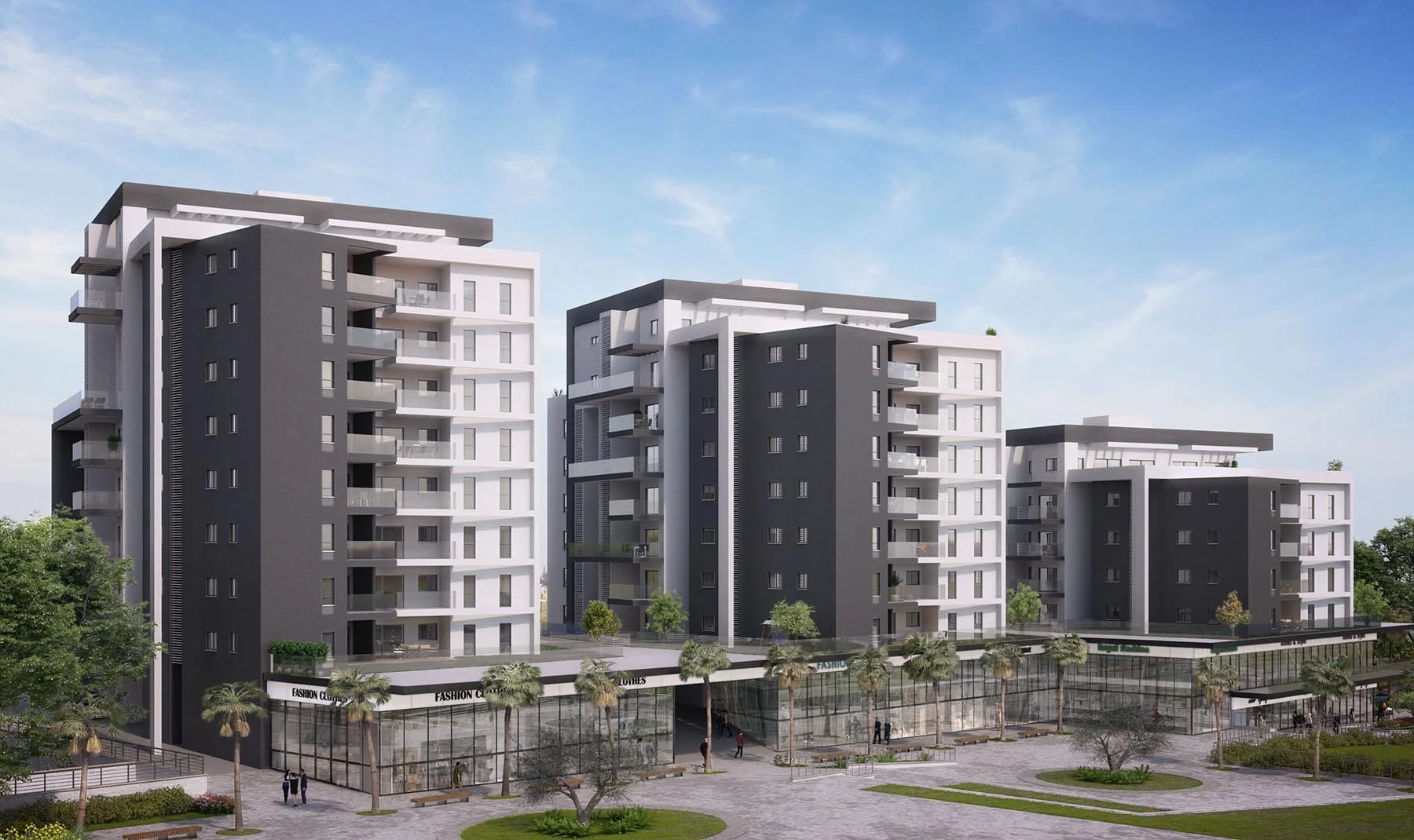 חמישה בניינים הכוללים עירוב שימושים - מסחר, משרדים ומגורים 150 יח"ד